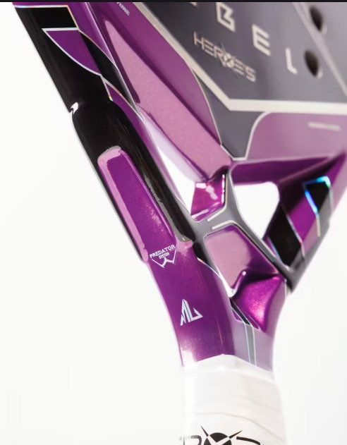 O quadro da nova Heroe foi otimizado para uma resposta mais rápida e um impacto ainda mais sólido, enquanto a face em carbono 3K de última geração garante precisão constante e alta reatividade. O núcleo de EVA BLACK foi calibrado para aumentar a potência e proporcionar excelente conforto nas fases mais intensas da partida. O cabo incorpora o grip NOENE de última geração, que minimiza as vibrações e oferece um controle mais preciso e confortável.